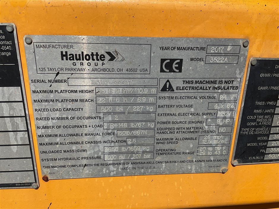 2017 Haulotte 3522A Knuckle Boom Lift Trailer