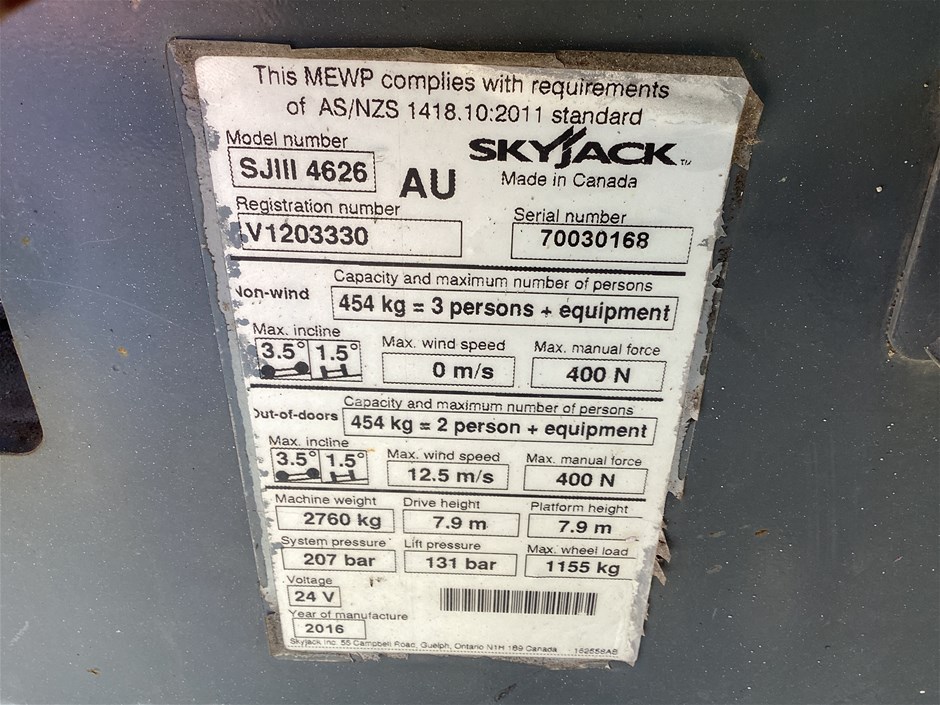 Part of Sale 2016 SKYJACK SJIII4626 Scissor Lift - 26ft (7.9m) - Electric