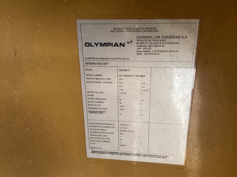 | Part of Sale | Unreserved Olympian GEP65-5 Generator | ||||||||||