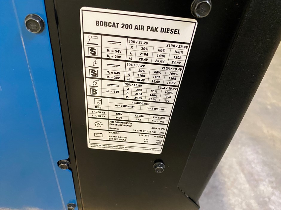 | Part of Sale | No Reserve Miller Bobcat 200 Air Pak Diesel Air Compressor | ||||||||||
