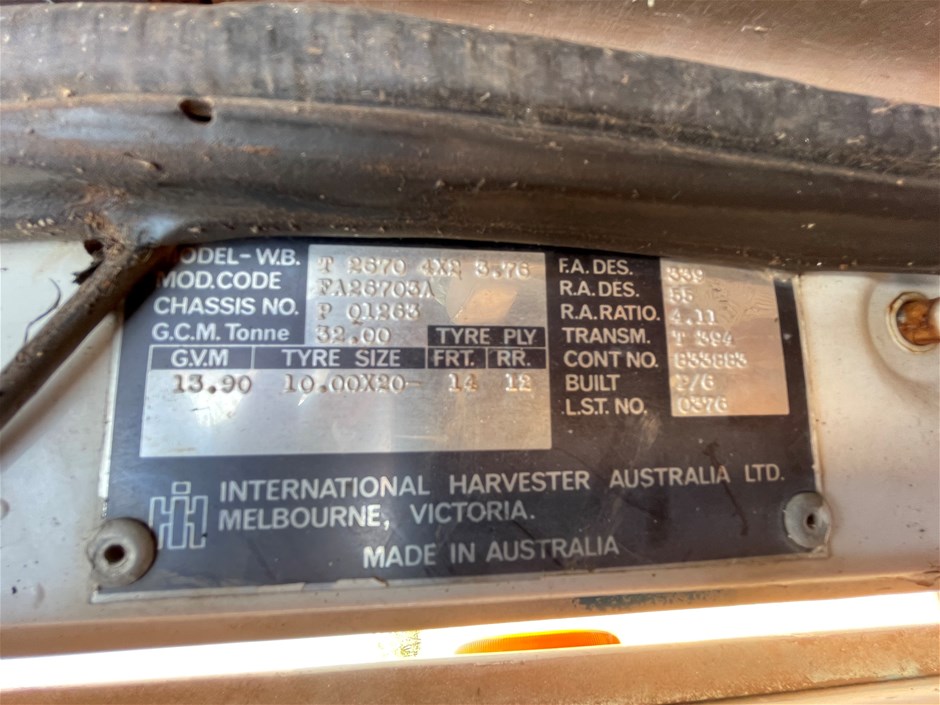 | Part of Sale | Bosich Widening Float & 1984 International Prime Mover | ||||||||||