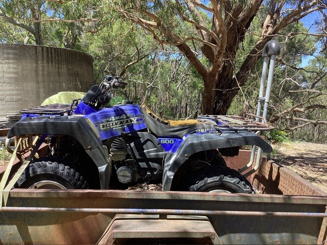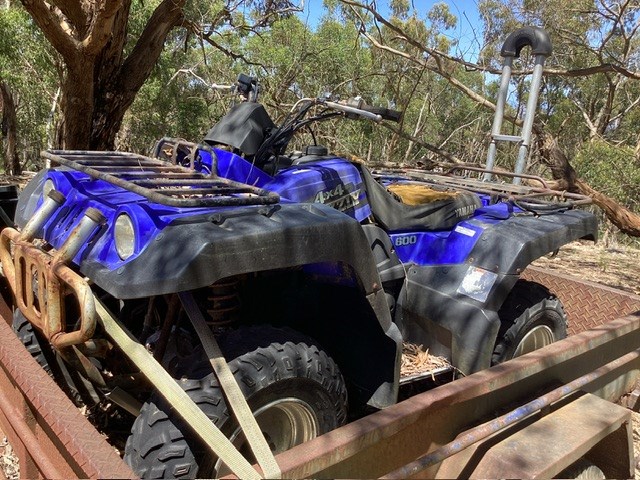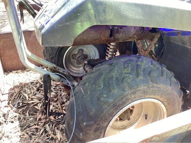 • Damage: Quad Bike: No identifiers, Rust/corrosion evident, seat perished, plastics damaged/sun affected, may have underline mechanical issues, flat battery