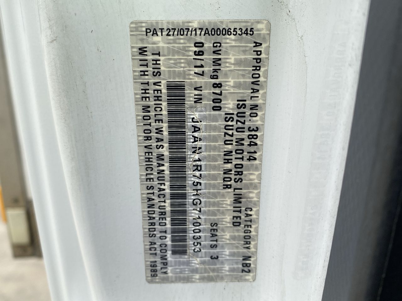 (SN:JAAN1R75HG7100353)