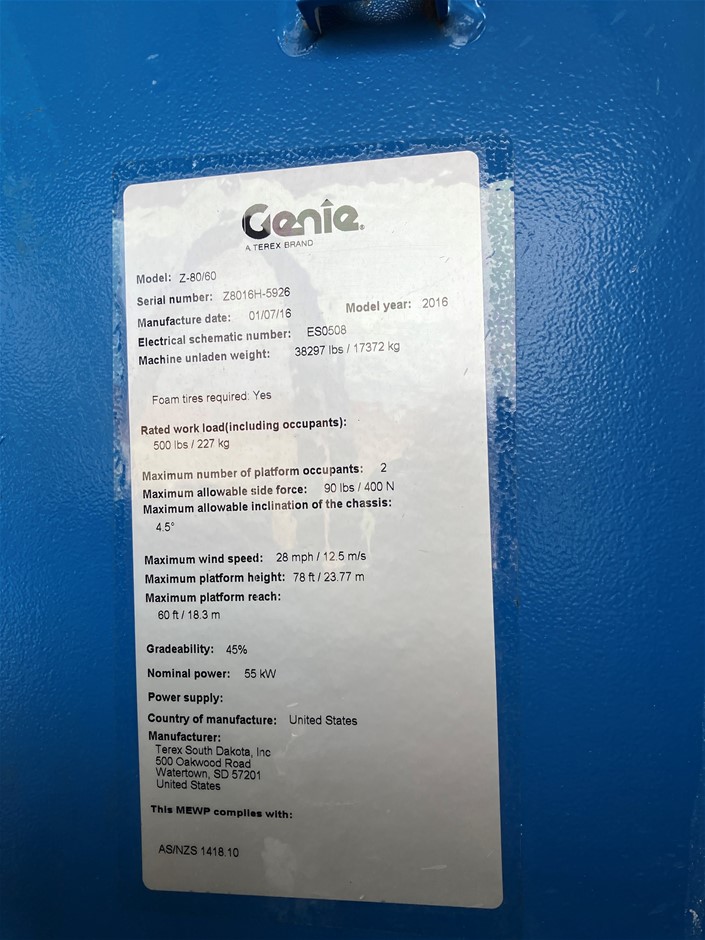2016 Genie Z80/60 Knuckle Boom - 80ft (24.4m) - Diesel