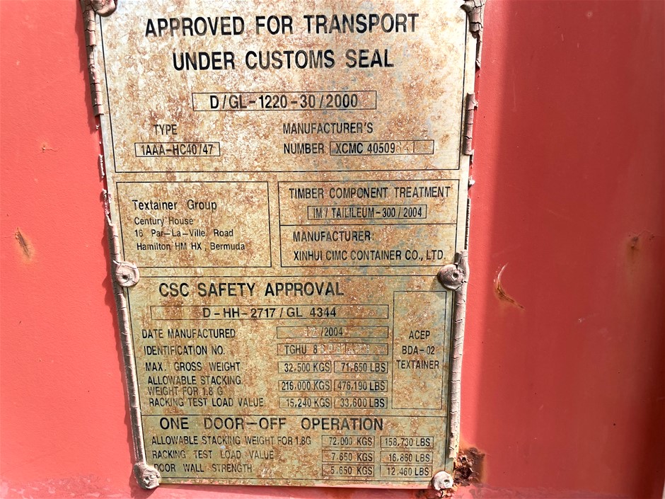 | Part of Sale | 40 Foot High Cube Container including Household Contents | ||||||||||