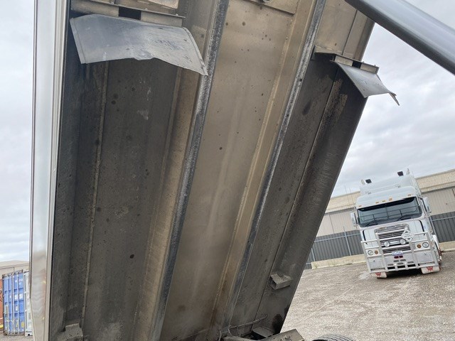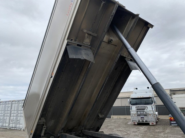 Fitted with Lusty EMS tipper, 3 rear shutes, side manual roll over tarp, Length: 4400 x 1350mm
