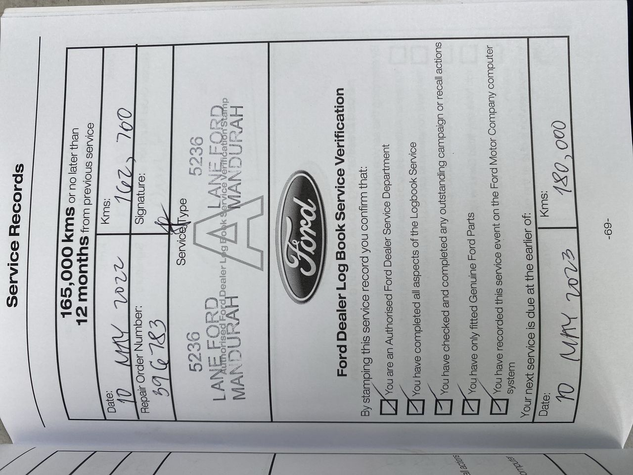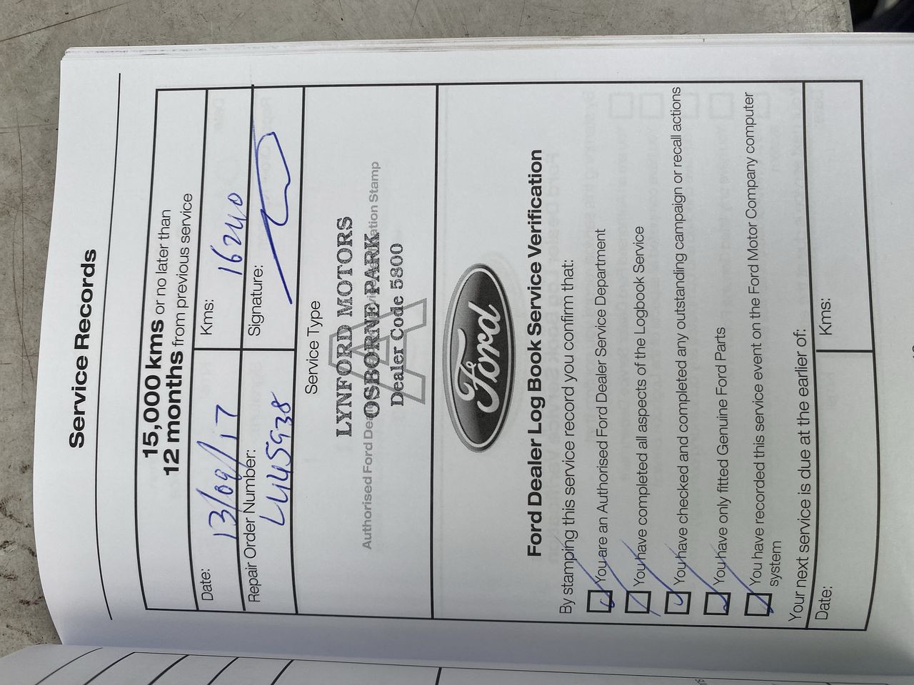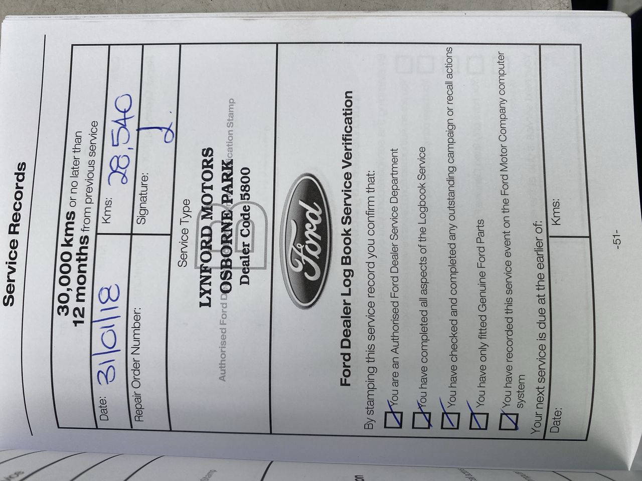 • Service History: Yes
