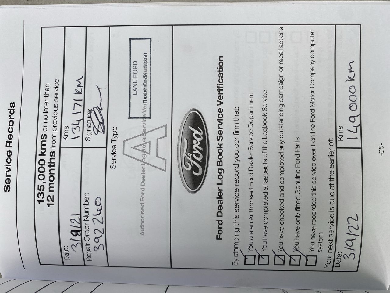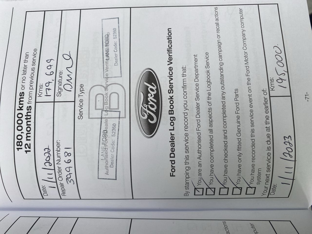 • Indicated Odometer Reading: 194065