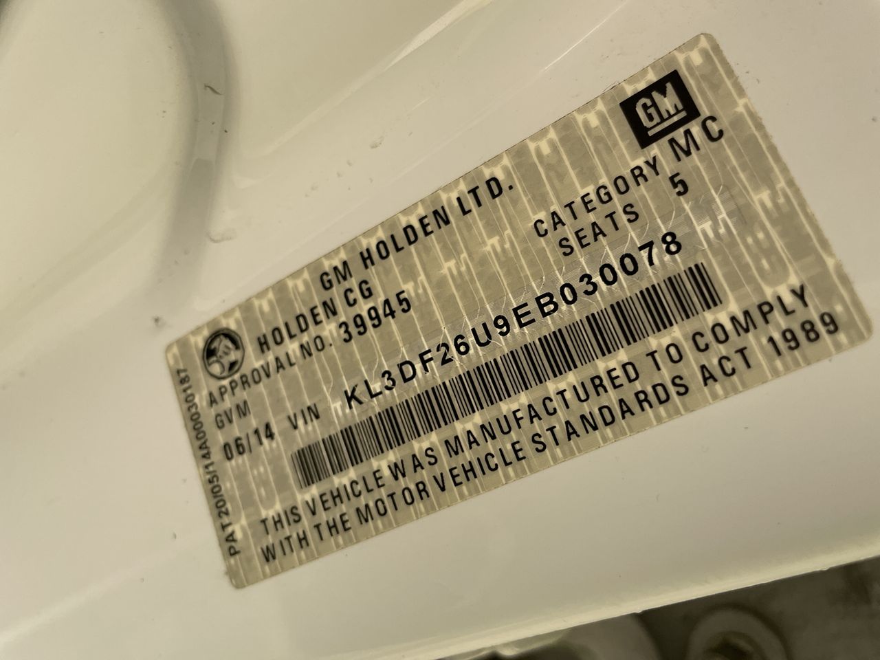 • VIN: KL3DF26U9EB030078