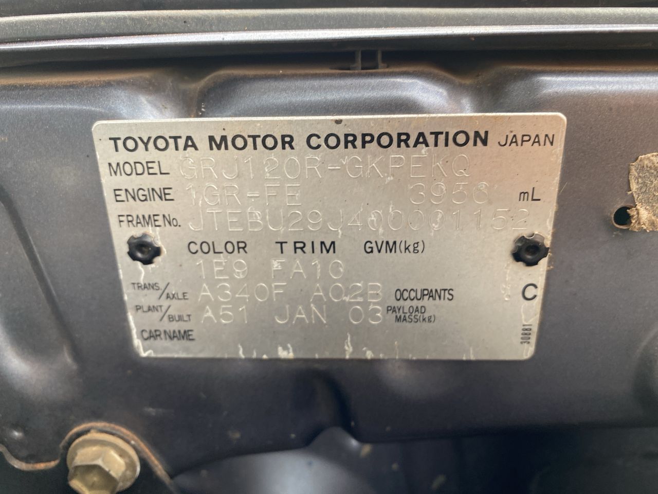 • VIN: JTEBU29J400001152