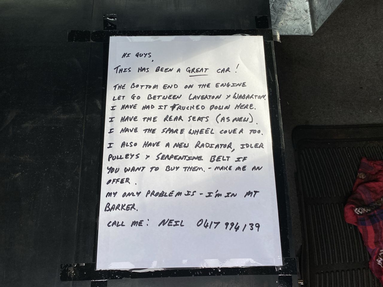 • You are required to transfer registration within 7 days of sale date. Please note an approved engine immobiliser must be installed and operational. At the time of registration transfer, this is the responsibility of the purchaser.