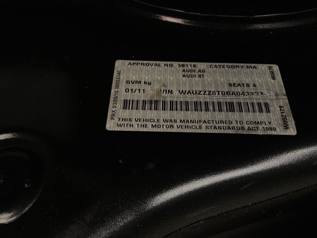 (SN:WAUZZZ8T0BA043327) (909115-9)