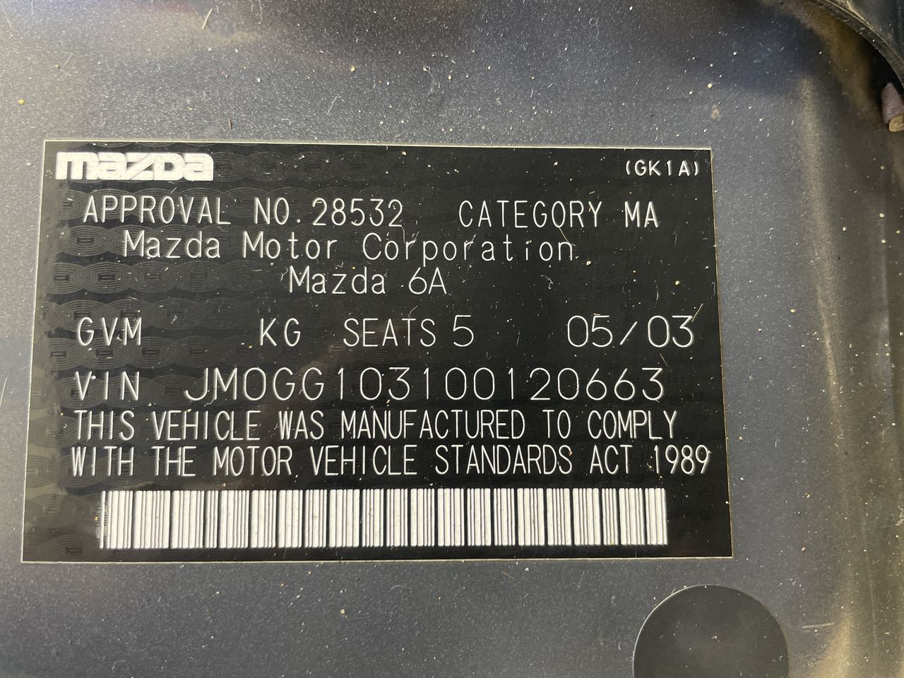 • VIN: JM0GG103100120663