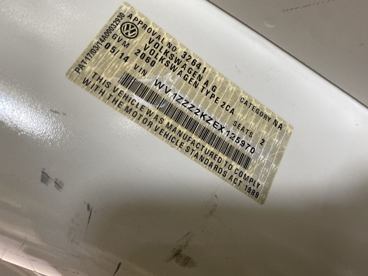 • VIN: WV1ZZZ2KZEX125970