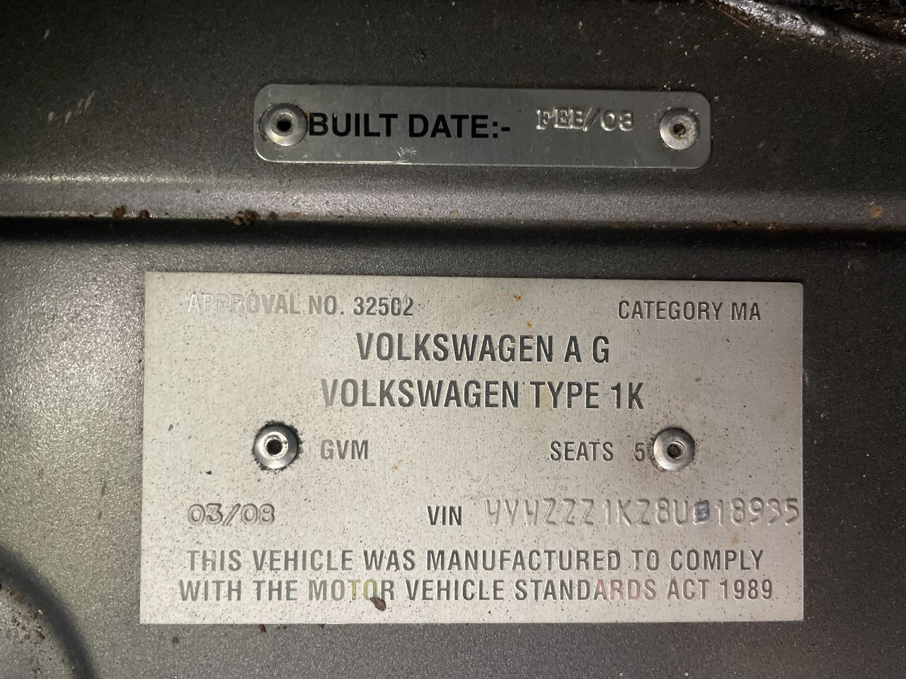(SN:WVWZZZ1KZ8U018935) (904088-586)