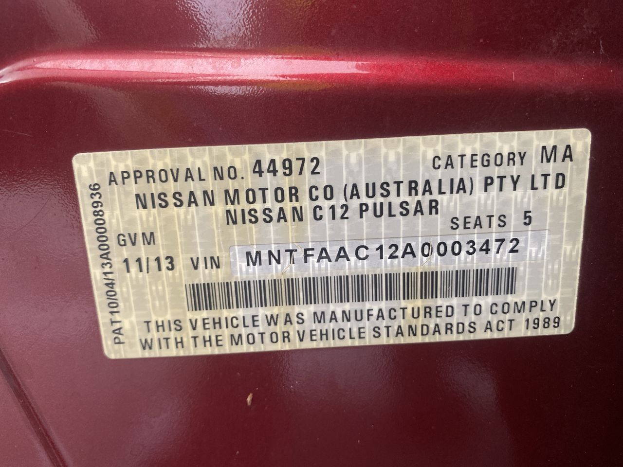2013 Nissan Pulsar ST C12 CVT Hatchback