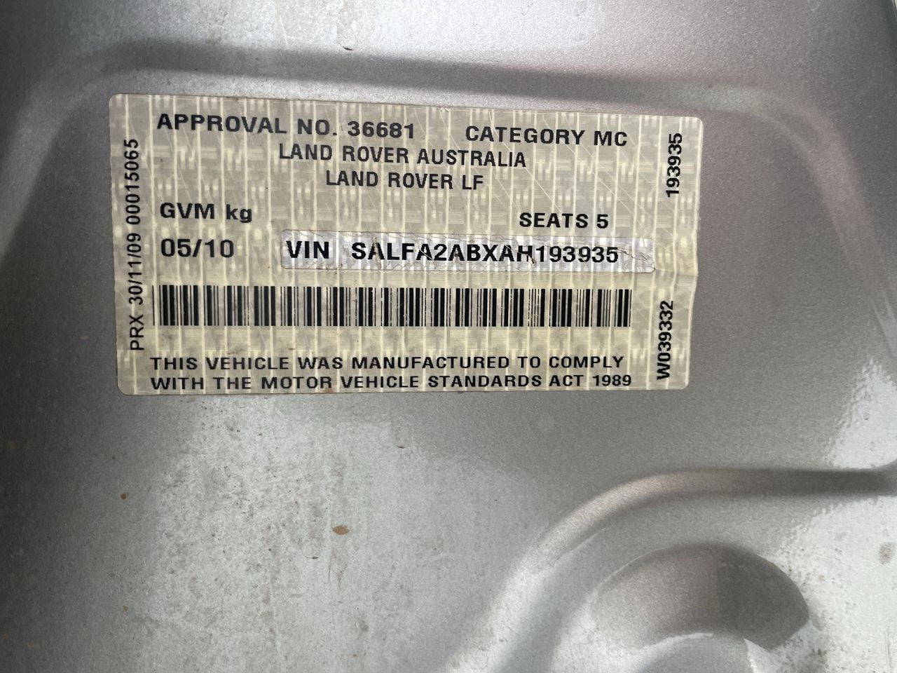 • VIN: SALFA2ABXAH193935