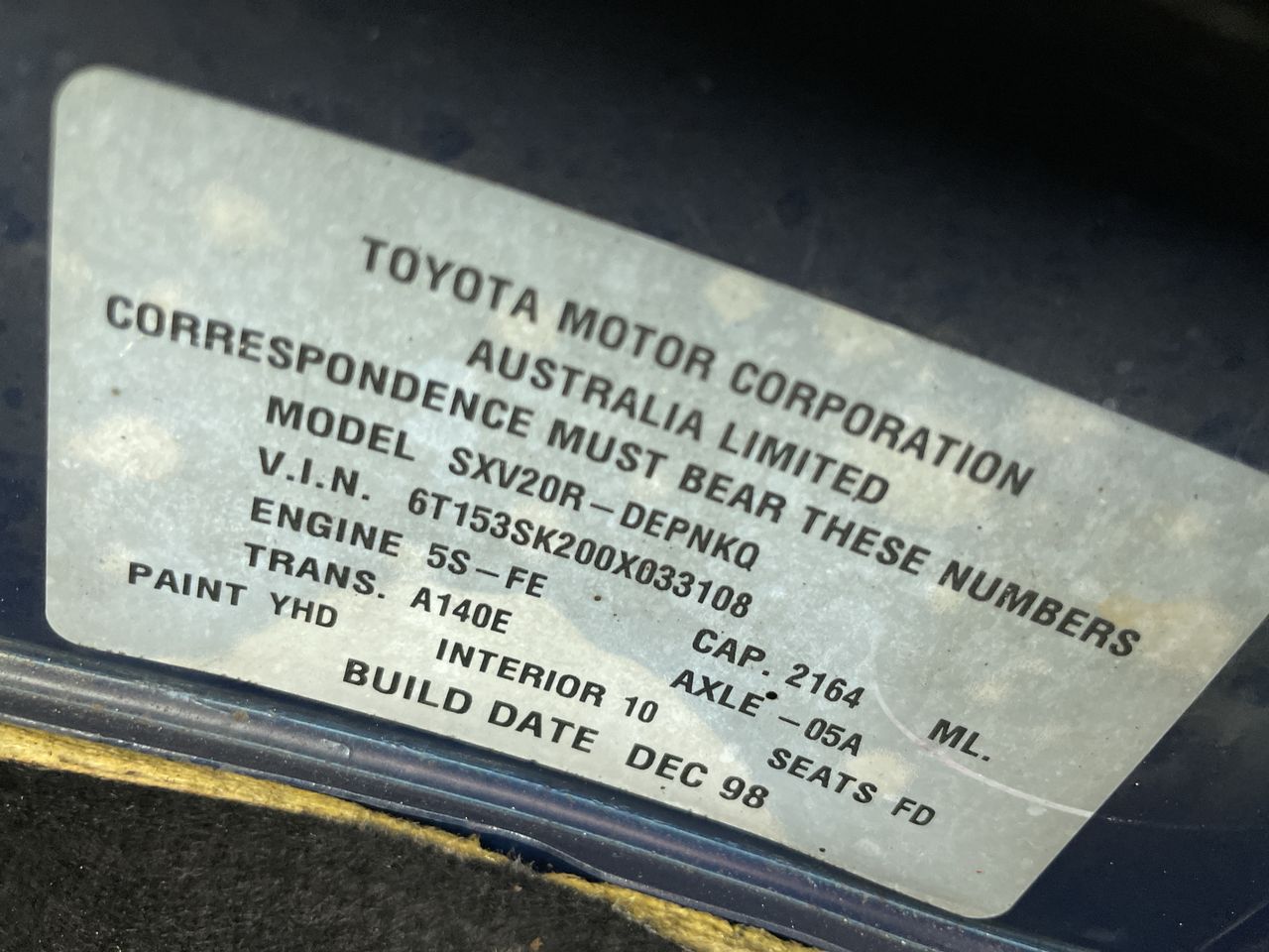 | Part of Sale | 1998 Toyota Camry CS-X SXV20R Automatic Sedan | ||||||||||||||||