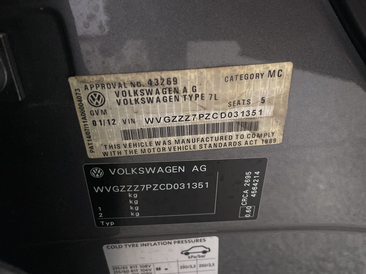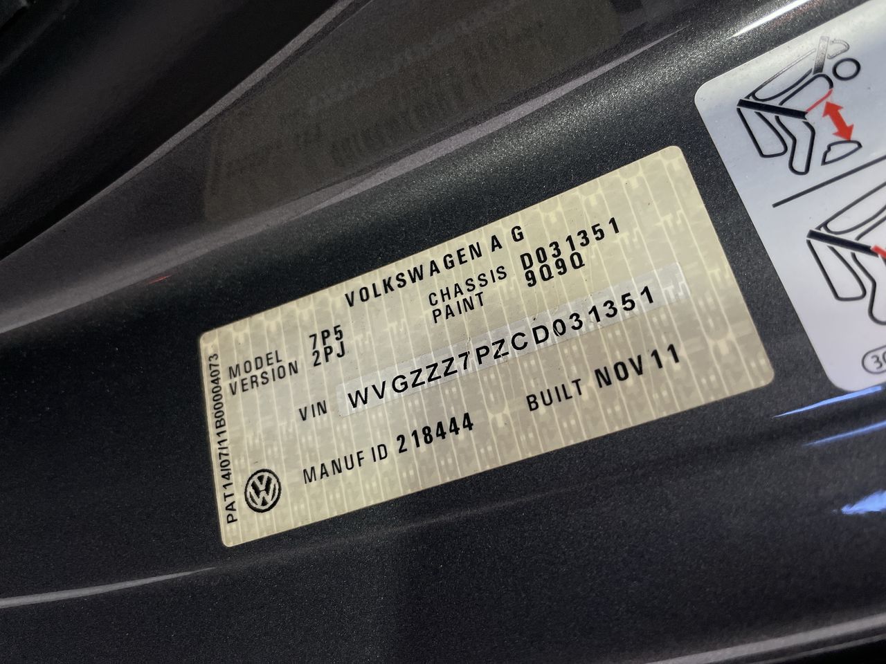 • VIN: WVGZZZ7PZCD031351