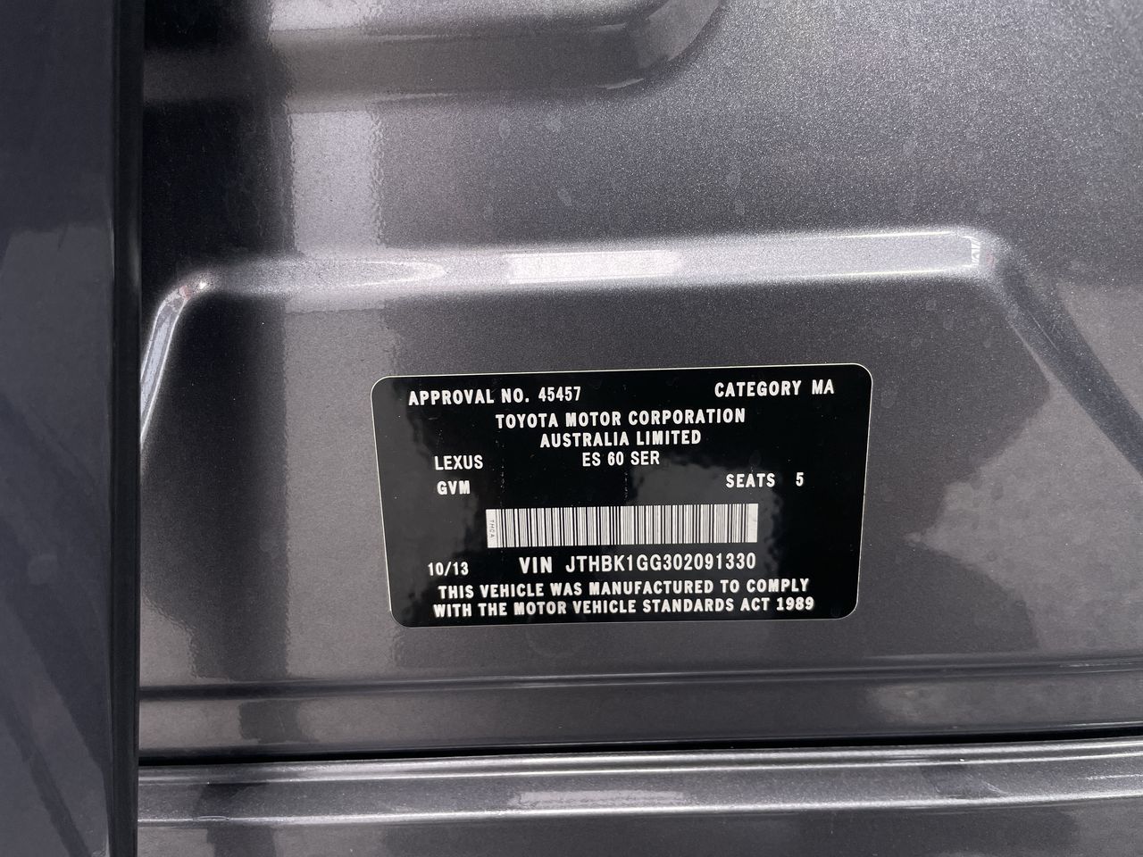 2013 Lexus ES 350 Sports Luxury GSV60R Automatic Sedan