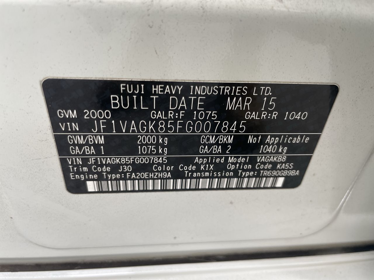 (SN:JF1VAGK85FG007845) (906761-45)