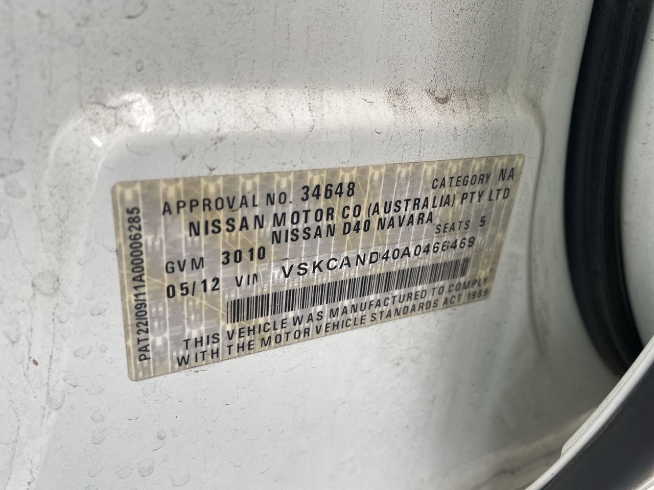 | Part of Sale | 2012 Nissan Navara 4x4 ST-X550 D40 | ||||||||||||||