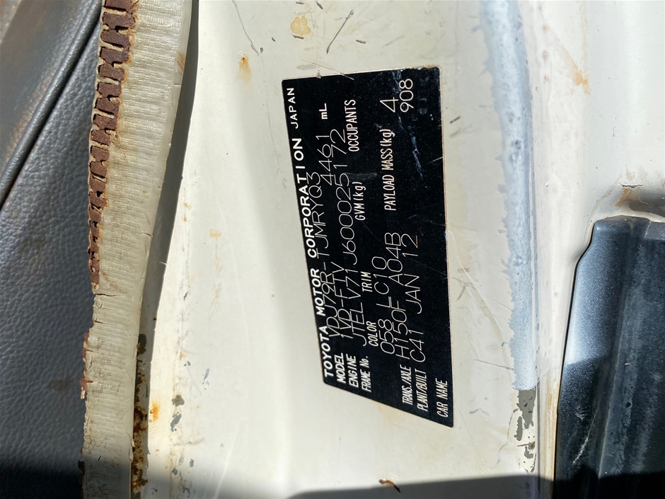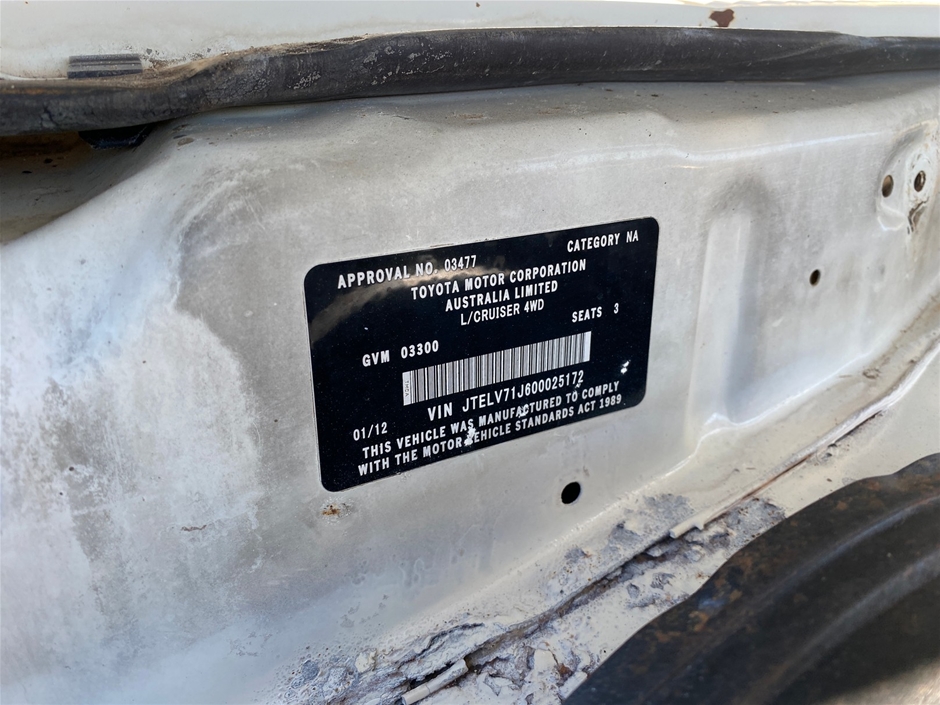 | Part of Sale | 2012 Toyota Landcruiser Workmate VDJ79R | ||||||||||||||