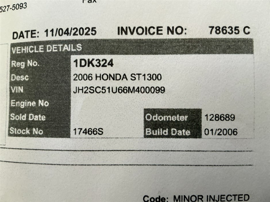 Part of Sale 2006 Honda ST1300 Motorcycle