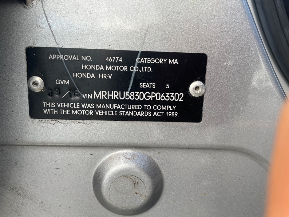 | Part of Sale | 2016 Honda HR-V Limited Edition CVT Wagon | ||||||||||||||