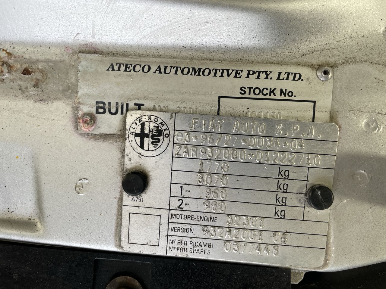 | Part of Sale | 2001 Alfa Romeo 156 2.0 Twin Spark Automatic Sedan | ||||||||||||||