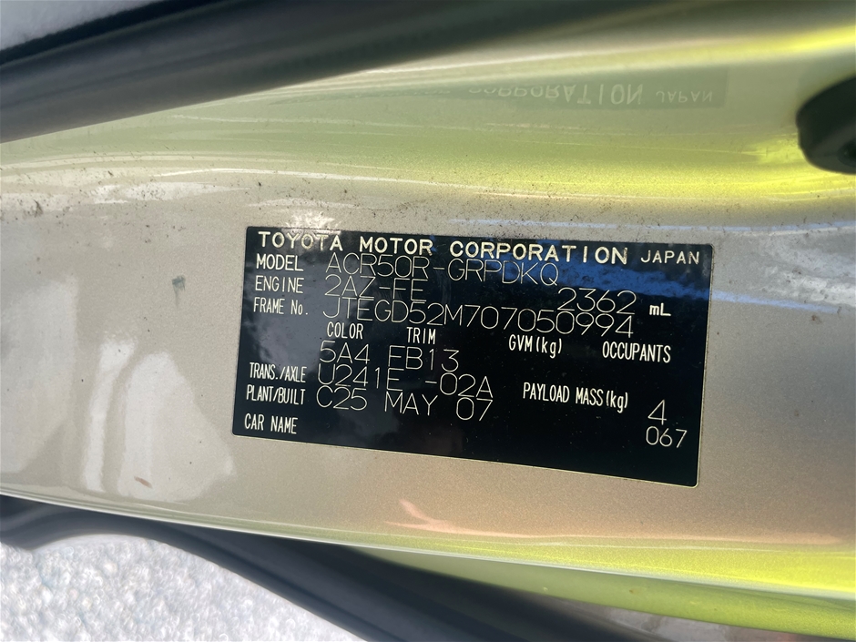 Part of Sale 2007 Toyota Tarago Automatic 8 Seats People carrier