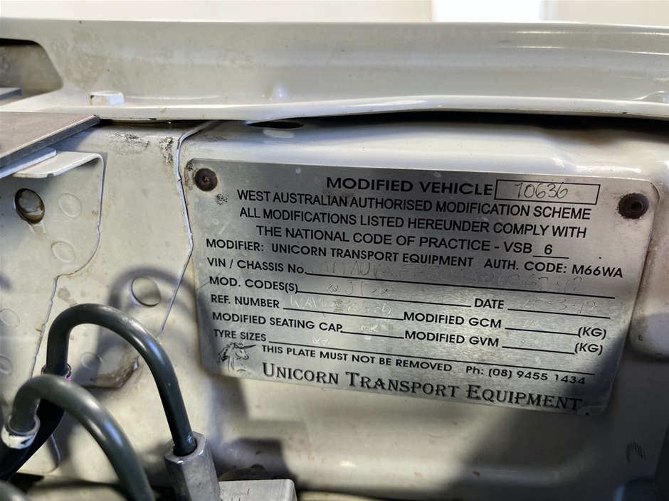 • Registration Expiry Date: 22-10-2025 - Registration will only be transferred to the registered bidder who must hold a valid WA Licence otherwise vehicle will be sold unregistered. Vehicle Sold Without Roadworthy