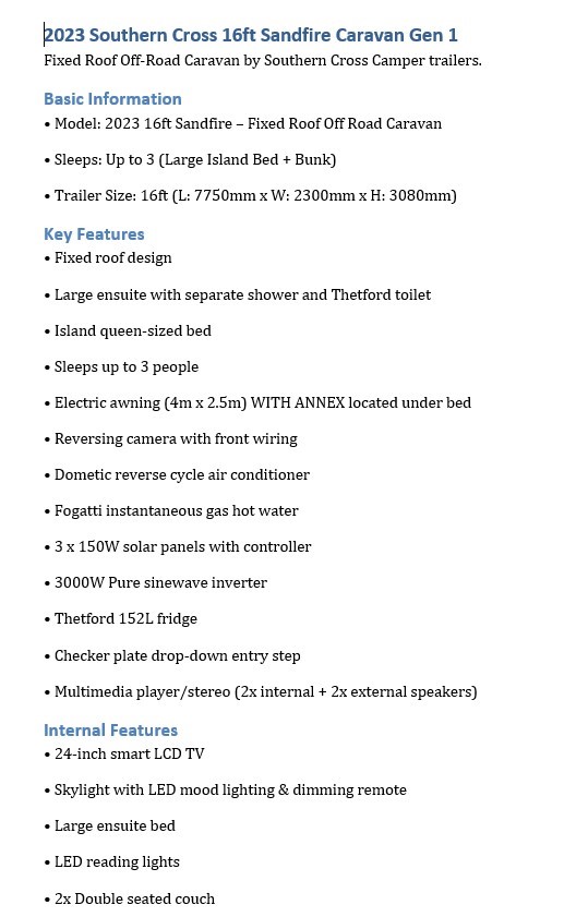 | Part of Sale | 2023 Southern Cross Camper Trailer Caravan | ||||||||||||