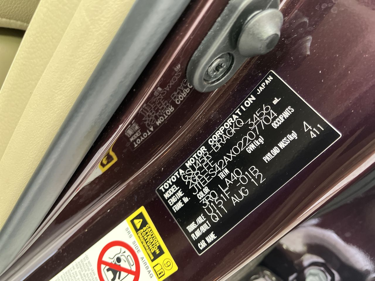 | Part of Sale | 2012 Toyota Kluger 4X4 GRANDE GSU45R | ||||||||||||||