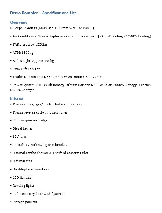 | Part of Sale | 2025 Southern Cross Retro Rambler Caravan | ||||||||||||