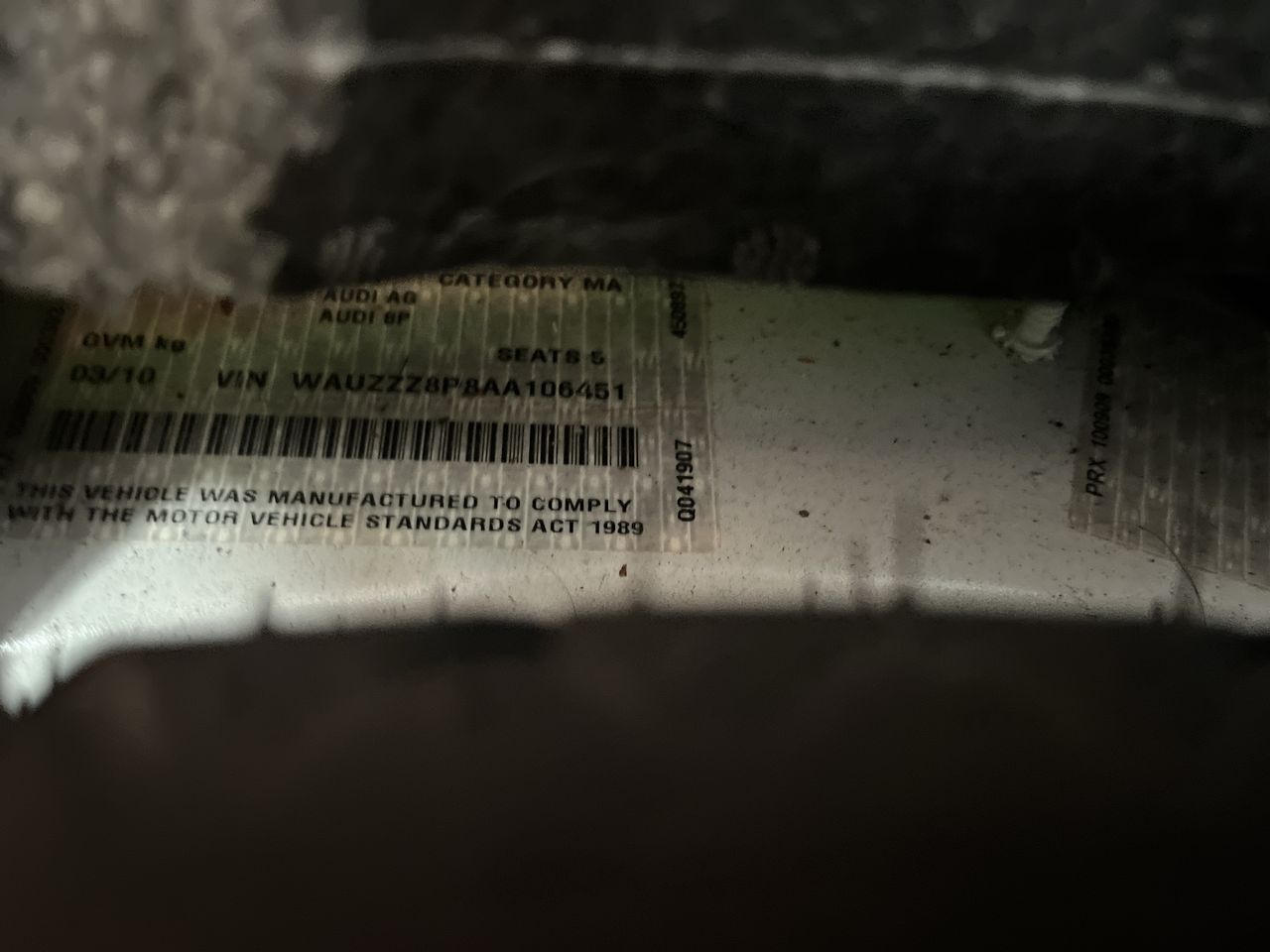 (SN:WAUZZZ8P8AA106451) (923058-1)