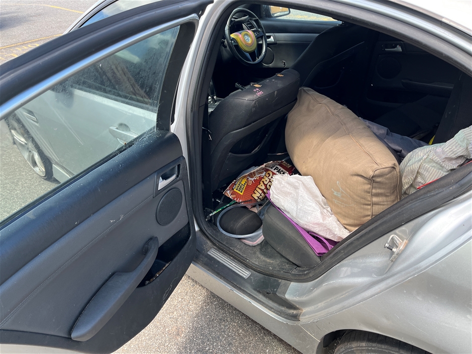 • Interior: Steering wheel worn, handbrake handle damaged, drivers seat plastic missing, markings on the door card, general rubbish inside, cockroaches inside vehicle. Stability control off and service charging system indicated on the dashboard., Exterior: Headlights foggy, one of the wheels mismatched.