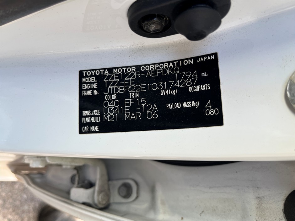| Part of Sale | 2006 Toyota Corolla Automatic Sedan | ||||||||||||||
