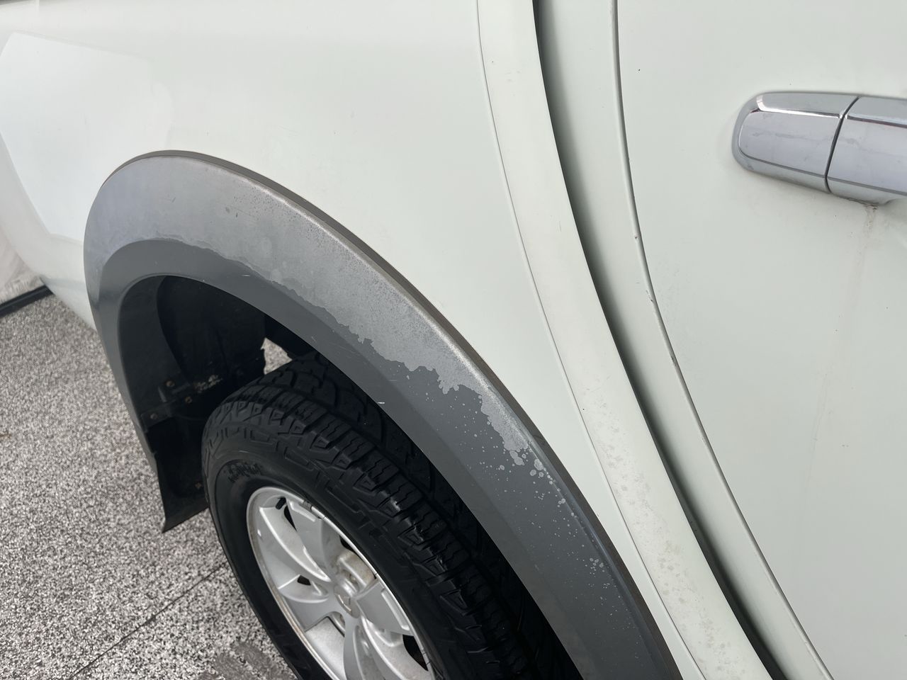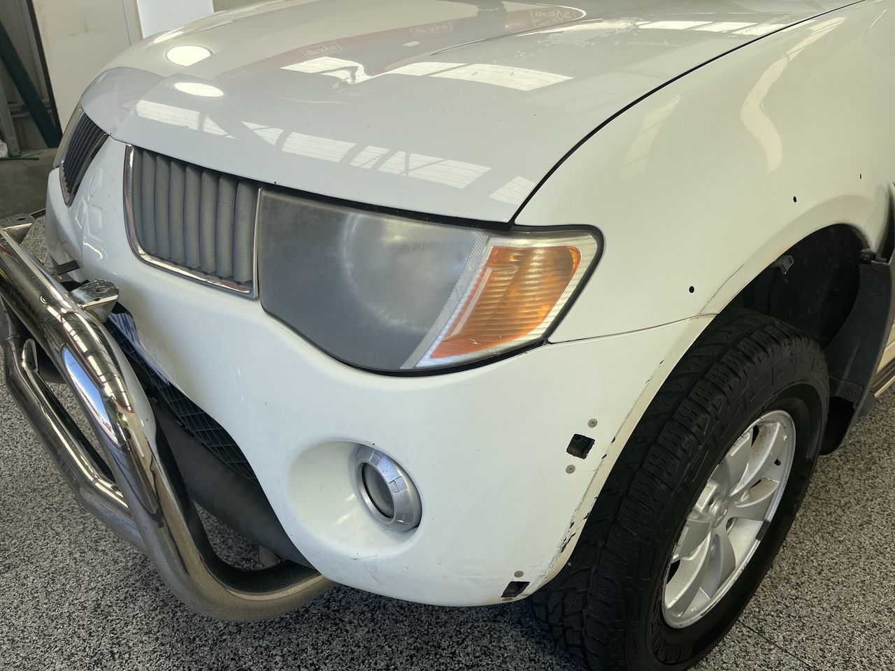 • Interior: Steering wheel worn, marks on roof lining, Exterior: Missing front left fender flare, plastics peeling.