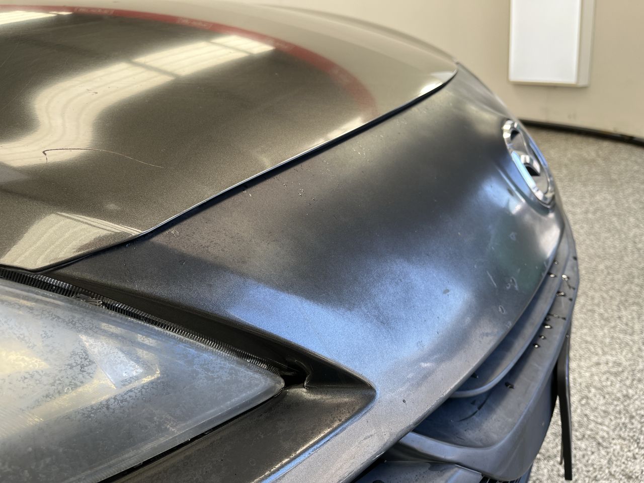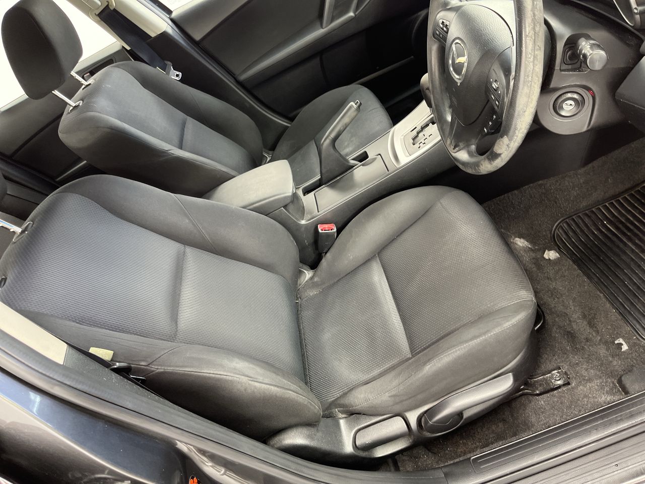 • Interior: Marks on roof lining, Steering wheel very worn, Exterior: bonnet insulation worn, Front bumper not sitting properly, hazed headlights, Guard rubs on drivers door when opening, chipped windscreen