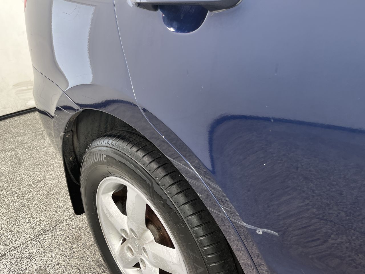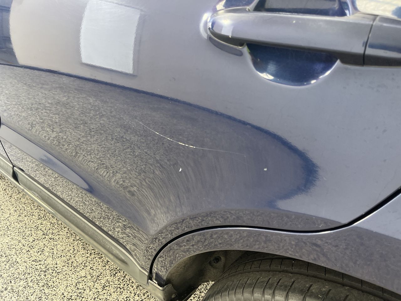 • Large Scuff on Both Sides of Vehicle Door , Rear Quarter, Front Bumper