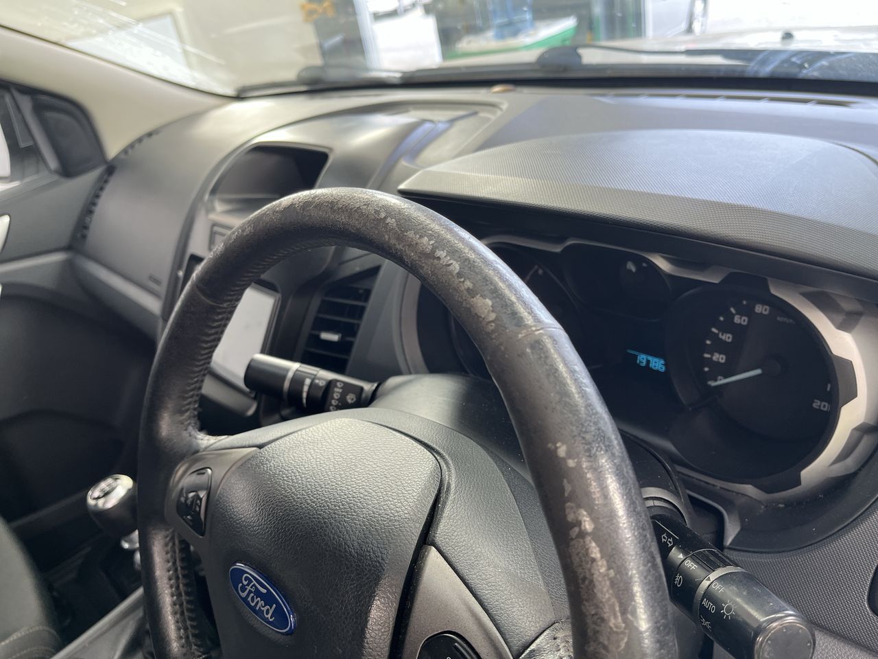 • Interior: Steering wheel worn, shift knob worn, door handles bunbling/peeling, Exterior: Window trims worn.