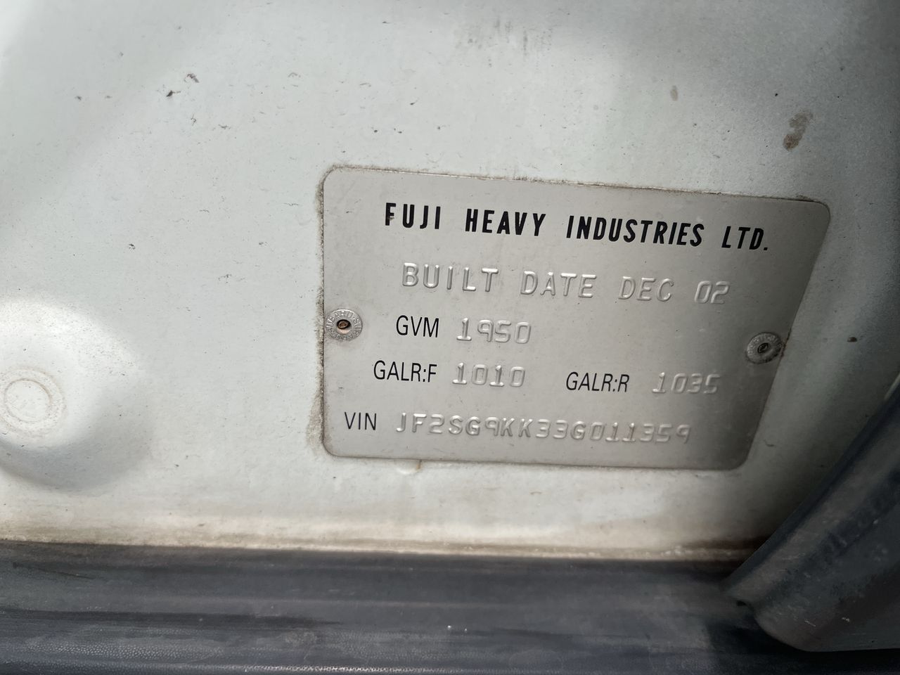 • VIN: JF2SG9KK33G011359