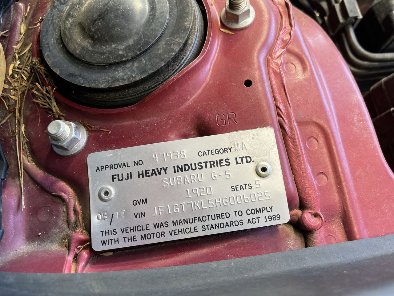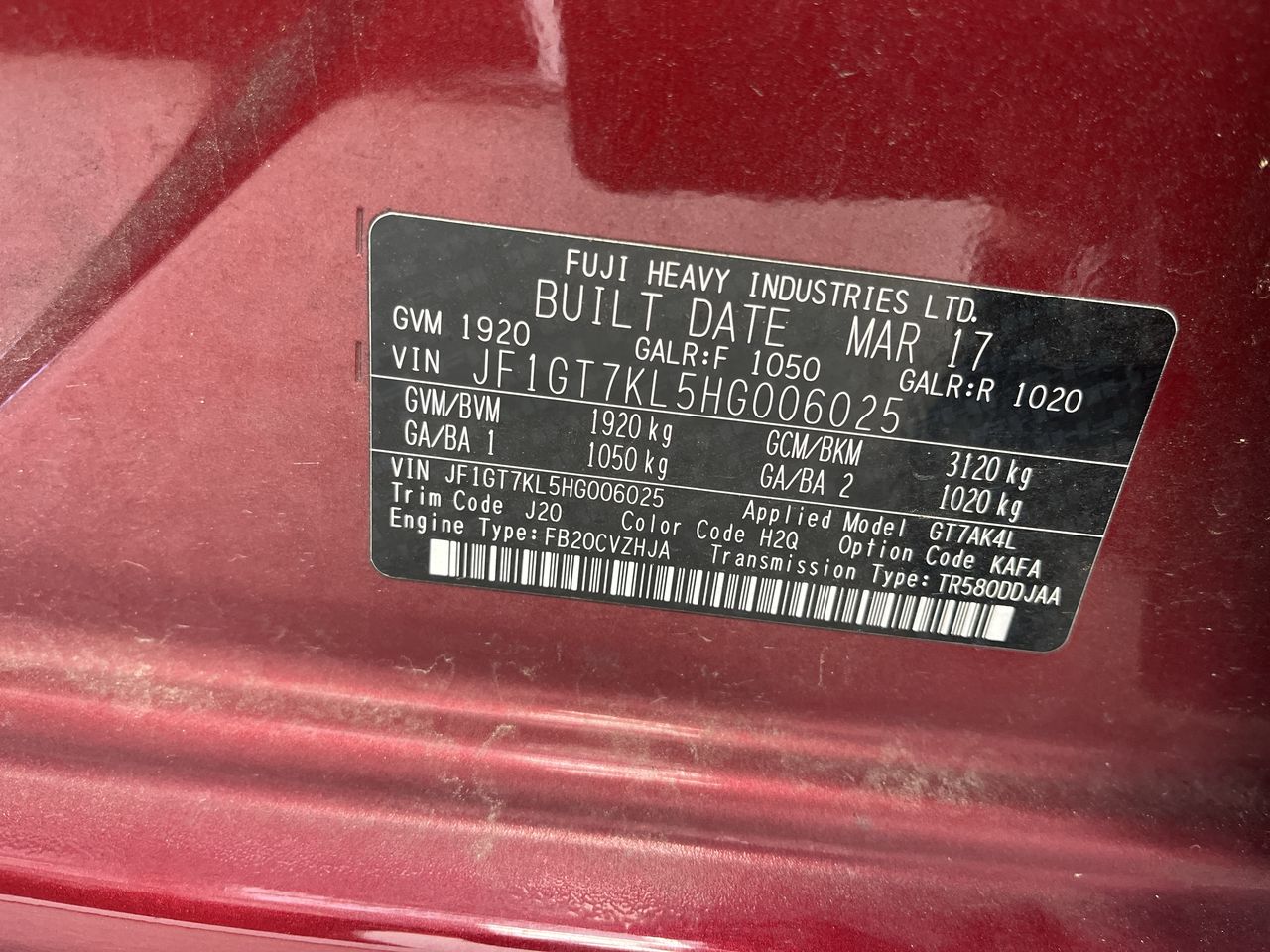 • VIN: JF1GT7KL5HG006025