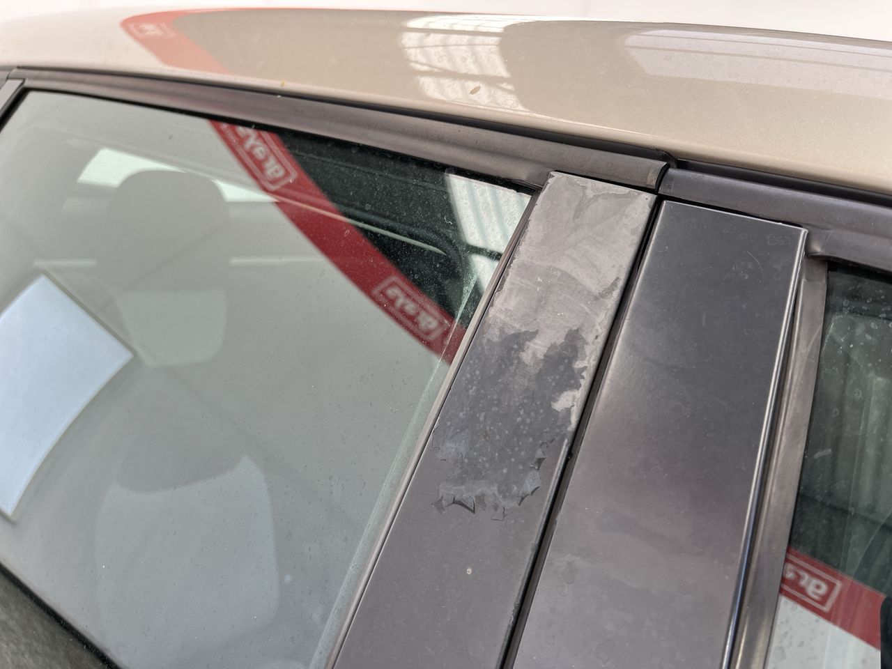 • Interior: seats worn, Exterior: Driver Door Window Plastic Panel Peeling.