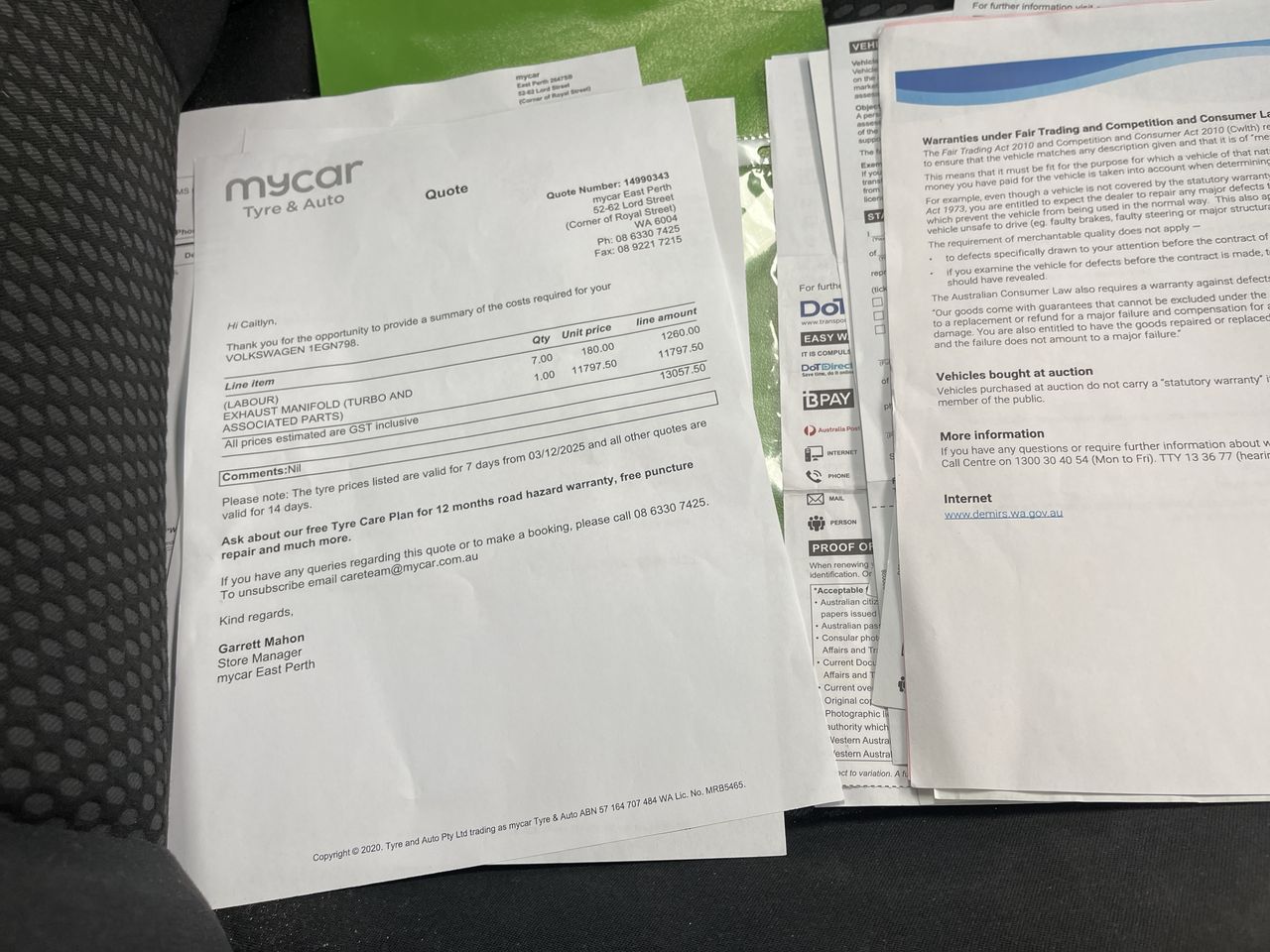 WA Auto Team Enquires about the item