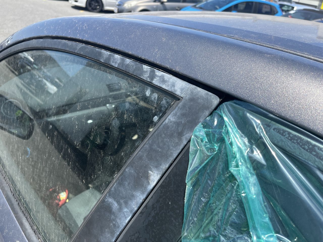 • Interior: Hood lining stained, Steering wheel worn, Exterior: Windscreen chipped, dislodge front and rear bumpers, Cables dragging from under rear bumper