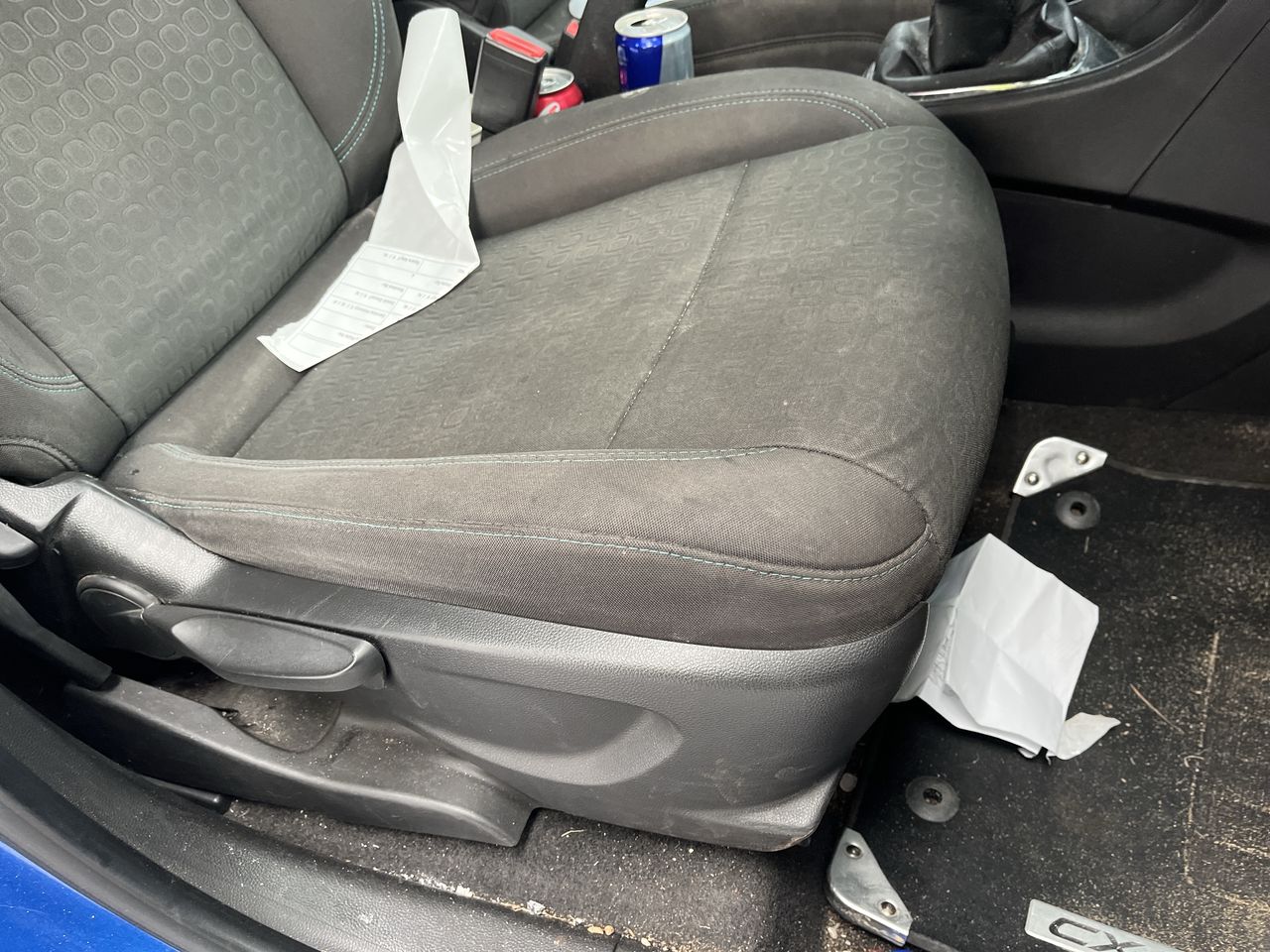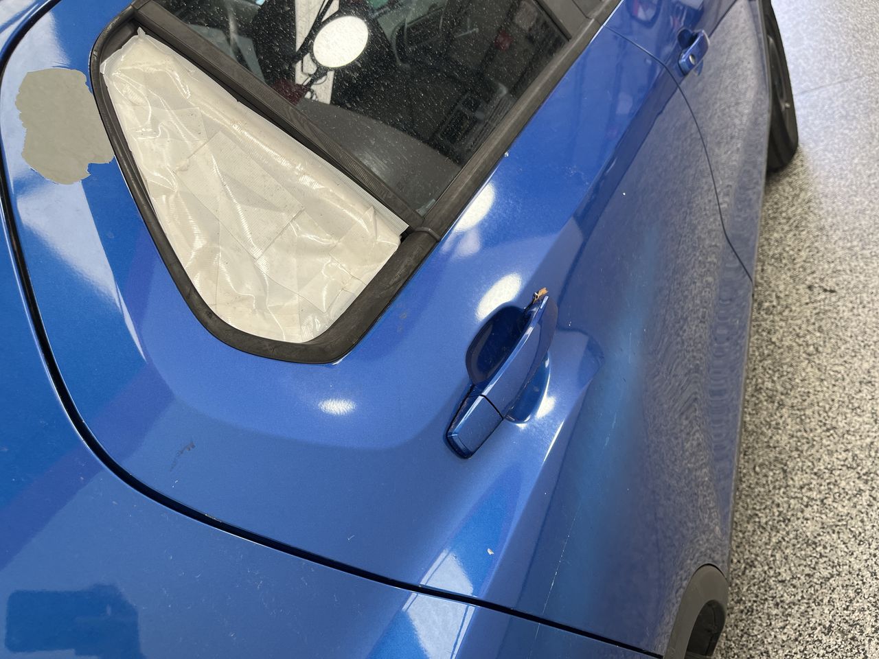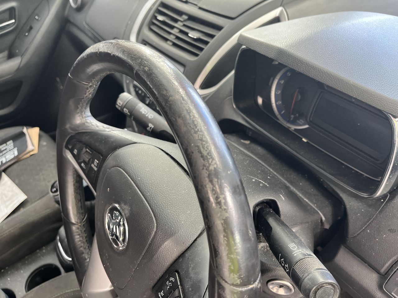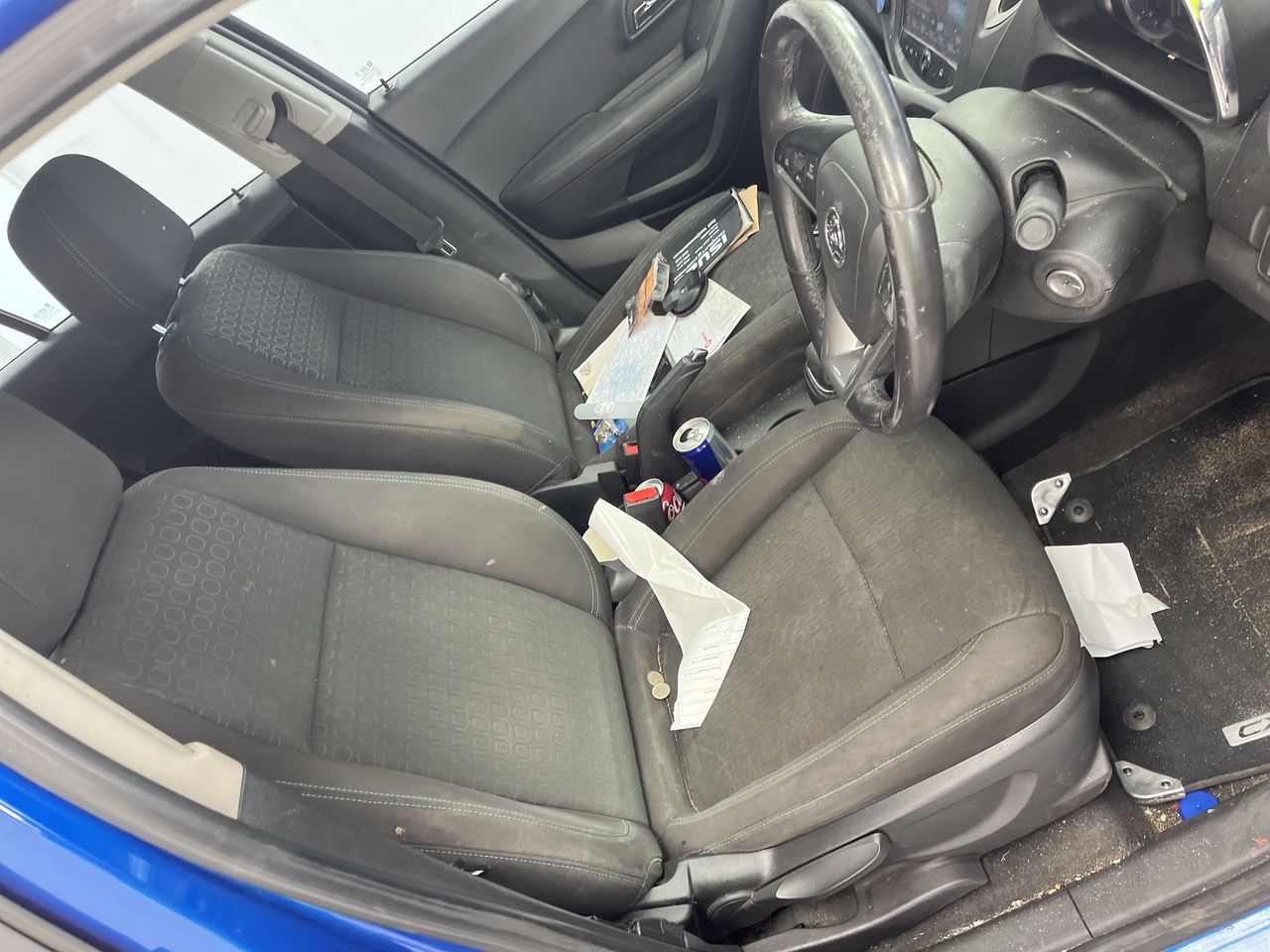 • Interior: Stained roof lining, shift knob damaged, steering wheel worn., Exterior: Front bumper requires attention, missing rear right window.