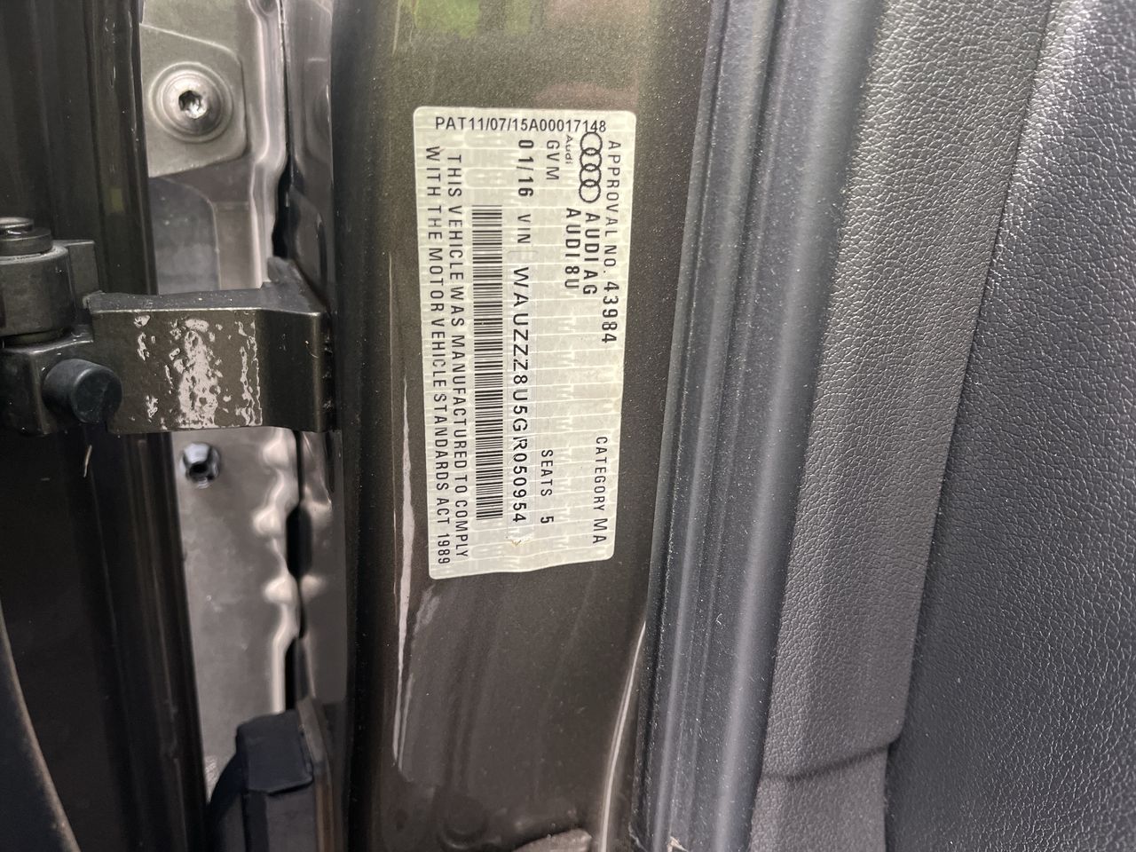 • VIN: WAUZZZ8U5GR050954