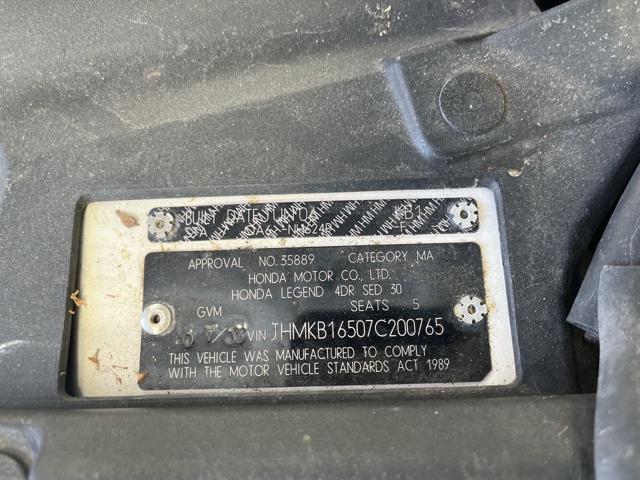 • VIN: JHMKB16507C200765
